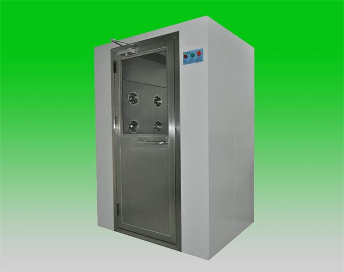 風淋室是人/貨進入潔凈室所必須通道,起到氣閥室密閉潔凈室的作用??梢詼p低人/貨進出潔凈區所帶來的污染問題。為了減少由于人/貨進出所帶來的大量塵埃粒子,經過高效過濾后的高速潔凈氣流由可旋轉噴射至人/貨上,而迅速的清除人/貨從非潔凈區所帶來的塵埃粒子及細菌。