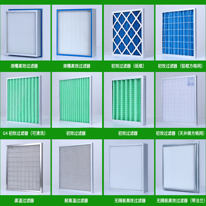 初效過濾器主要適用于空調與通風系統預過濾、潔凈室回風過濾、局部高效過濾裝置的預過濾,主要用于5μm及以上粒徑的塵埃粒子。有板式、密褶式、繞線式、袋式三類,外框材料主要有紙質、鋁板、冷板噴塑、鍍鋅板和不銹鋼板等樣式,過濾材料有無紡布、化纖、玻璃纖維等過濾效率35%-95%@5μm(計重法)。
